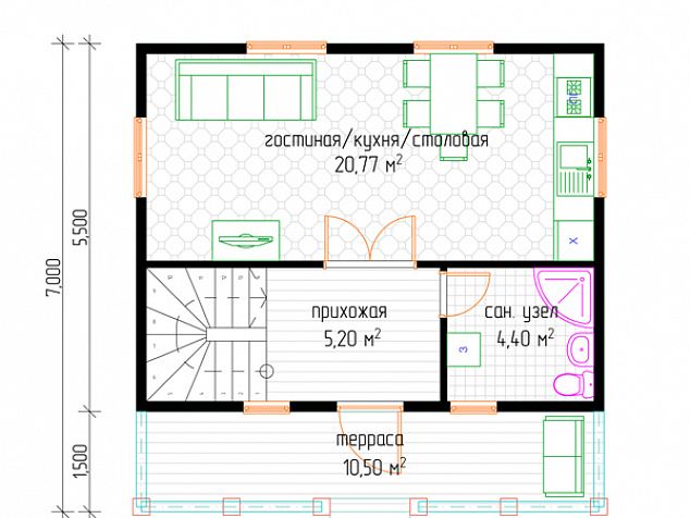 • Каркасная конструкция из сухого калиброванного леса хвойных пород. Все деревянные элементы каркасной конструкции обработаны огне-биозащитой.